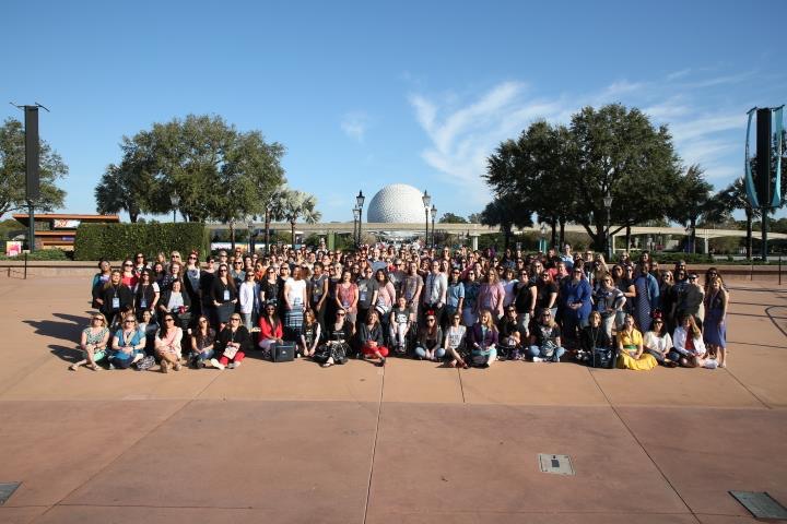 Next we walked a bit for a group photo. Right in front of Spaceship Earth. What a beautiful day!