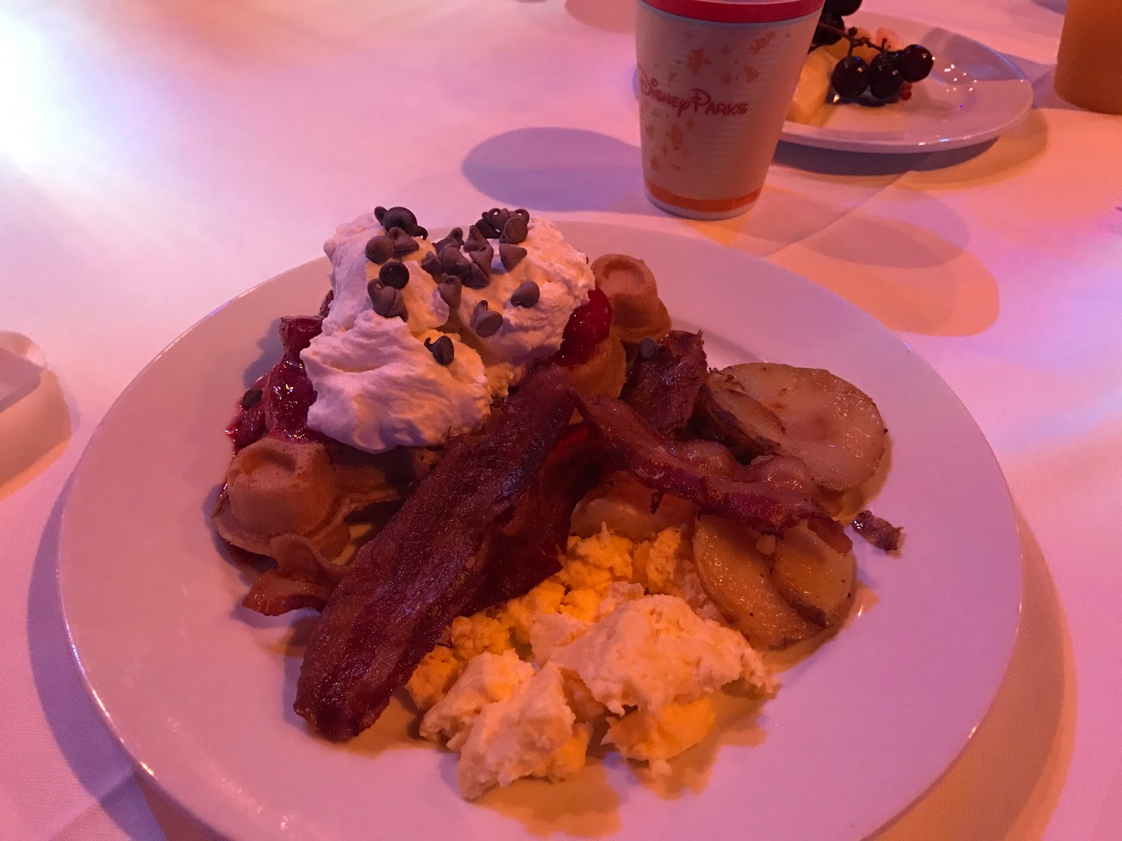 YUM!! Did I ever tell you breakfast is my favorite meal? And Mickey waffles topped with strawberries, whipped cream, AND chocolate chips?! YES PLEASE!!