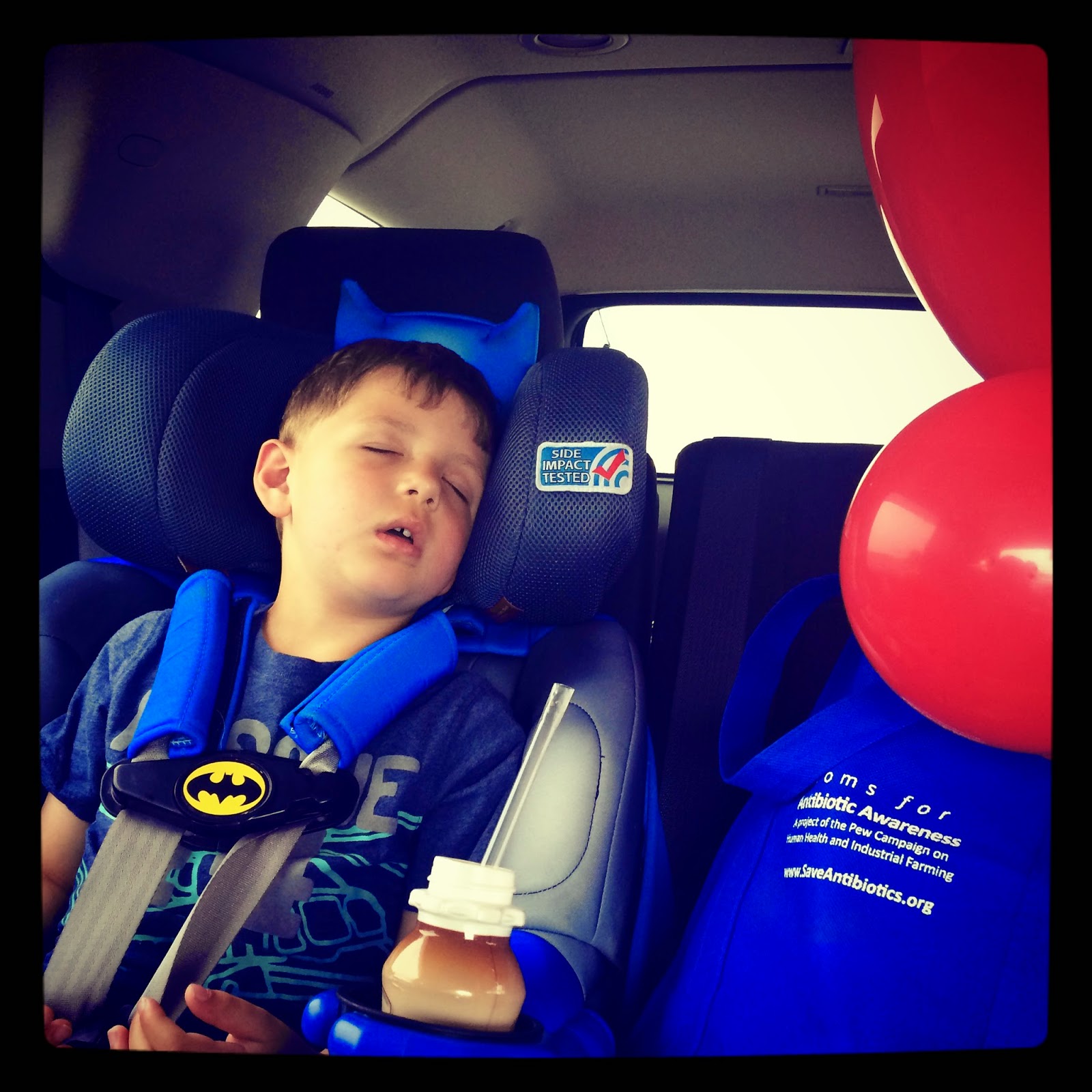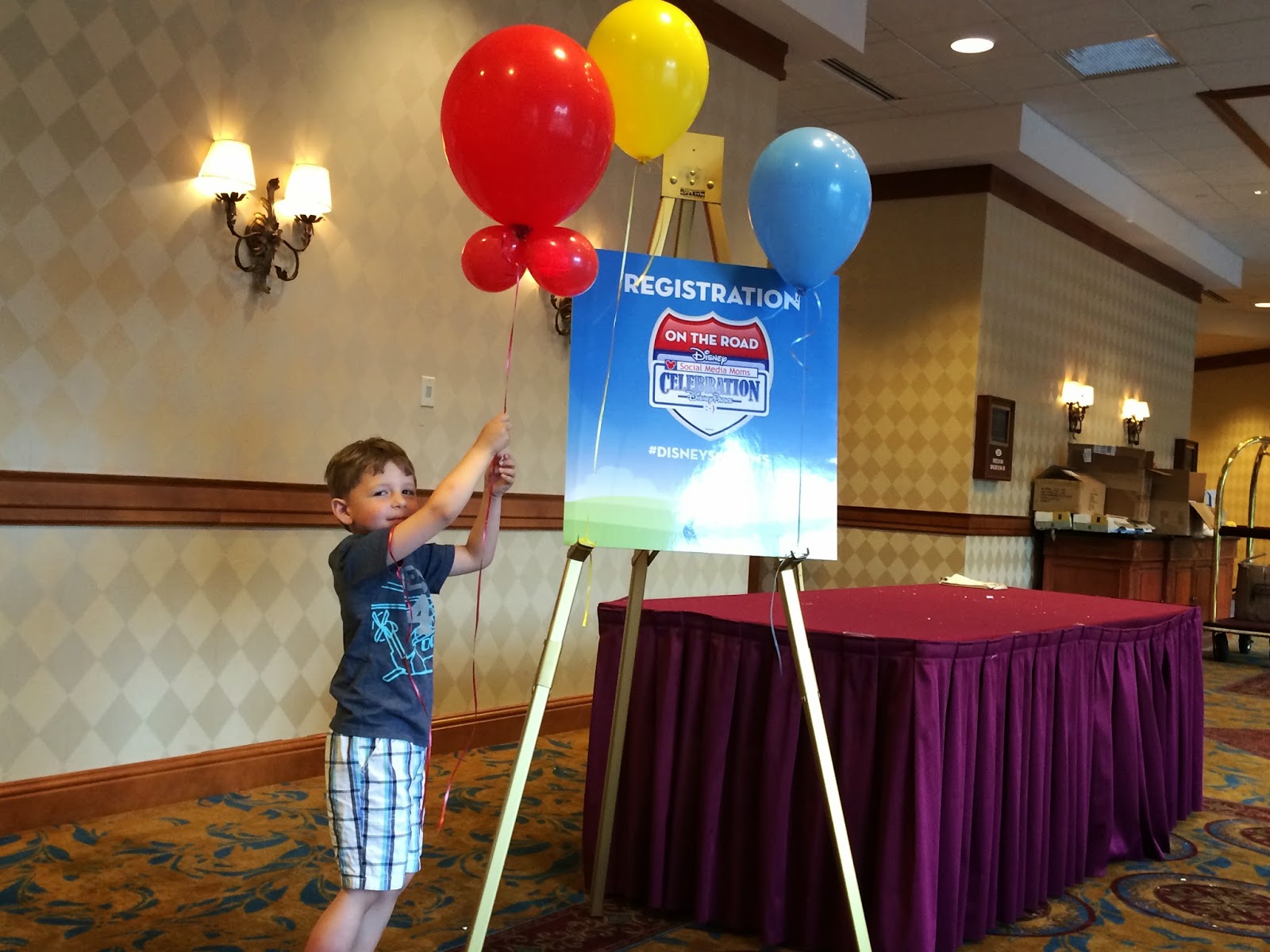 It was then time to leave, but first Lincoln was able to score himself a balloon!  And he posed for me in front of the registration sign ๐Ÿ™‚