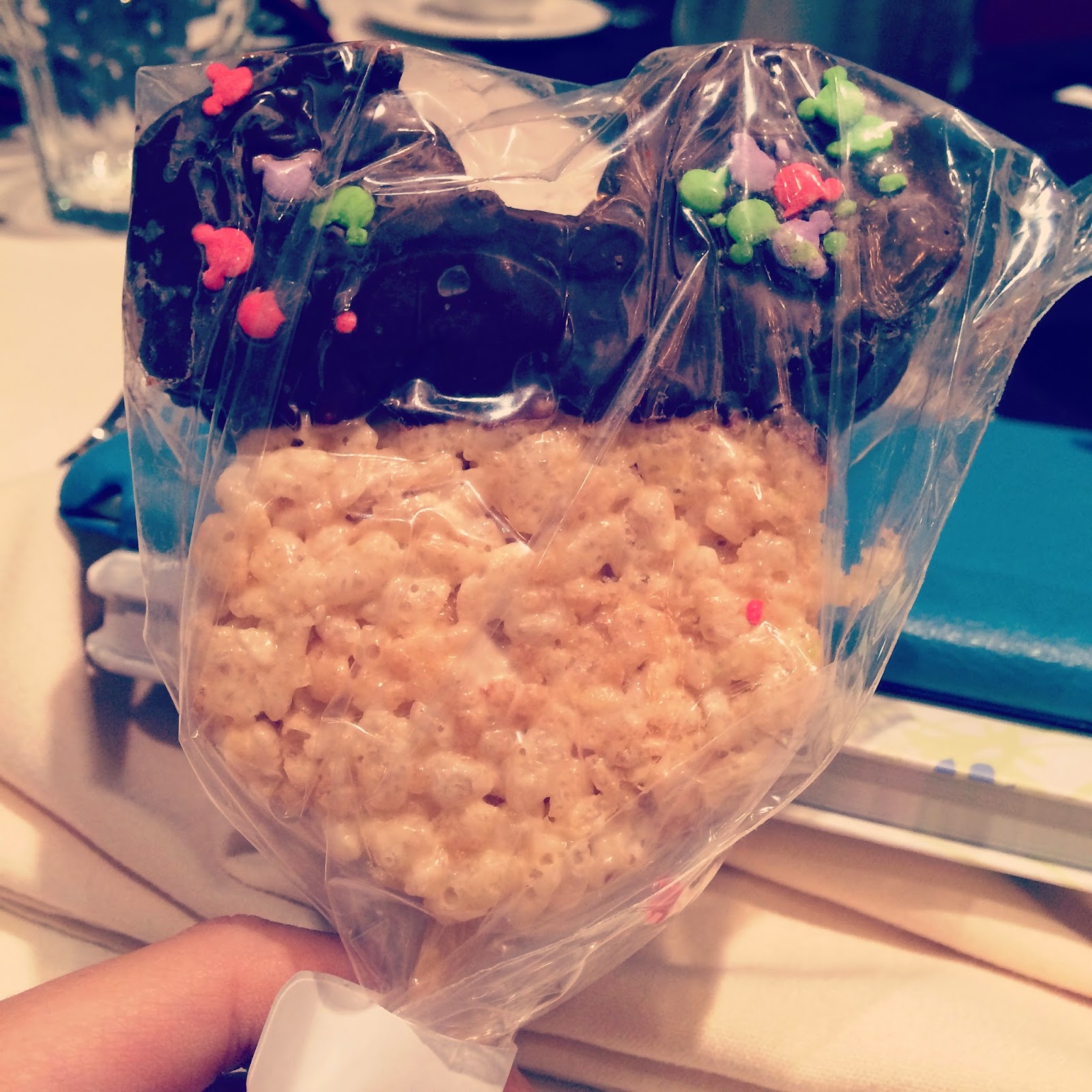 Naturally, awaiting for us on the tables were Mickey shaped Rice Krispy treats!  I tucked mine away for a special surprise for Lincoln.