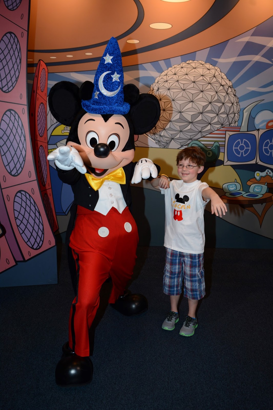 Lincoln had a blast with Mickey. He was wearing his Sorcerer hat, and Mickey took it off his head to wear it! Lincoln thought this was hysterical. Then Mickey showed Lincoln how to use his “sorcerer powers.”