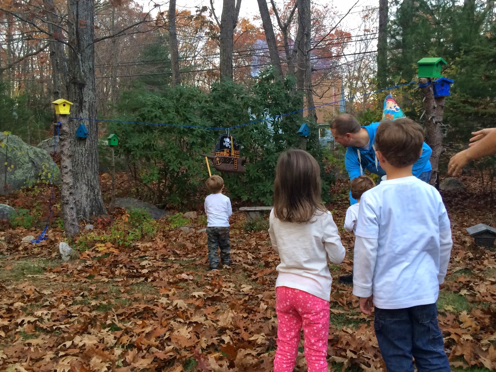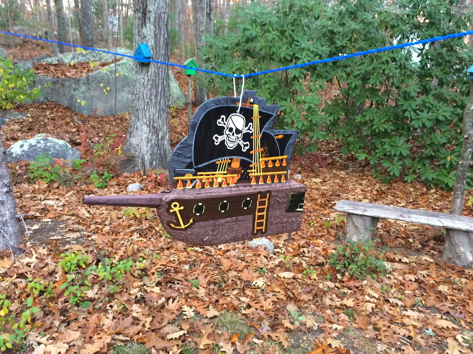 We even decided to set up a pinata for the kids – a pirate ship of course! Lincoln insisted it was the Jolly Roger….he loves him some Captain Hook! It was definitely a hit with the kids!