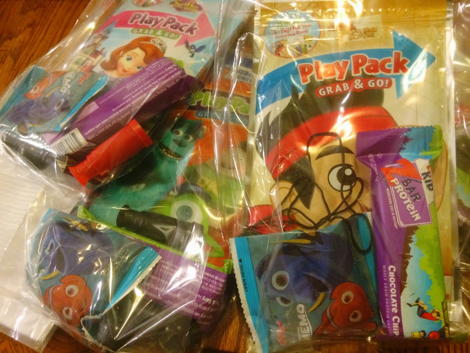 We sent the kids home with fun goodie bags. They included some fun party favors, Cliff Kid Bars, Finding Nemo fruit snacks, gold doubloon necklaces, and even spy glasses!