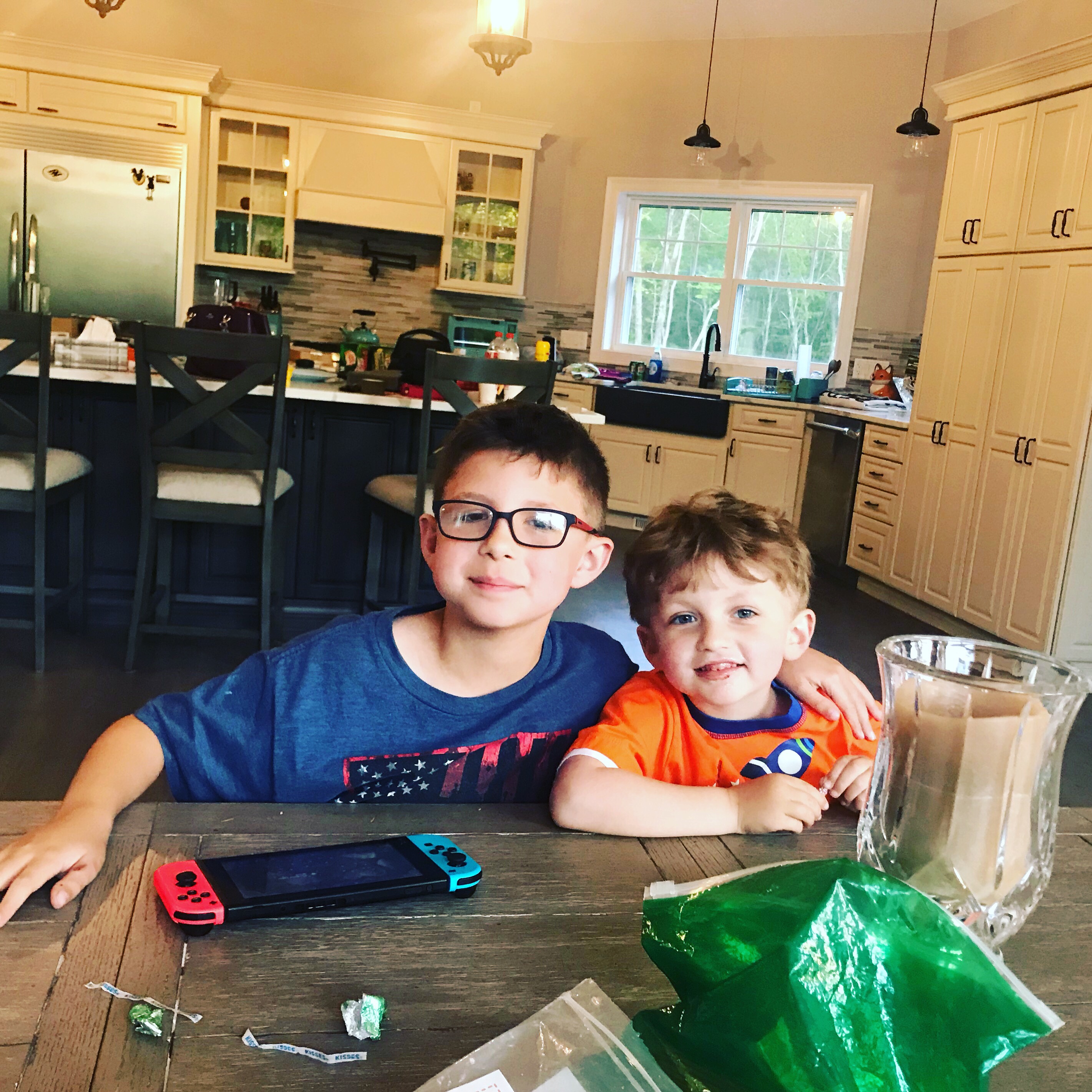 Home Sweet Home. Please excuse my messy kitchen in this photo. This was taken our first official night inside of our new home. My two sweet boys during dinner time. They are so happy to finally be HOME.