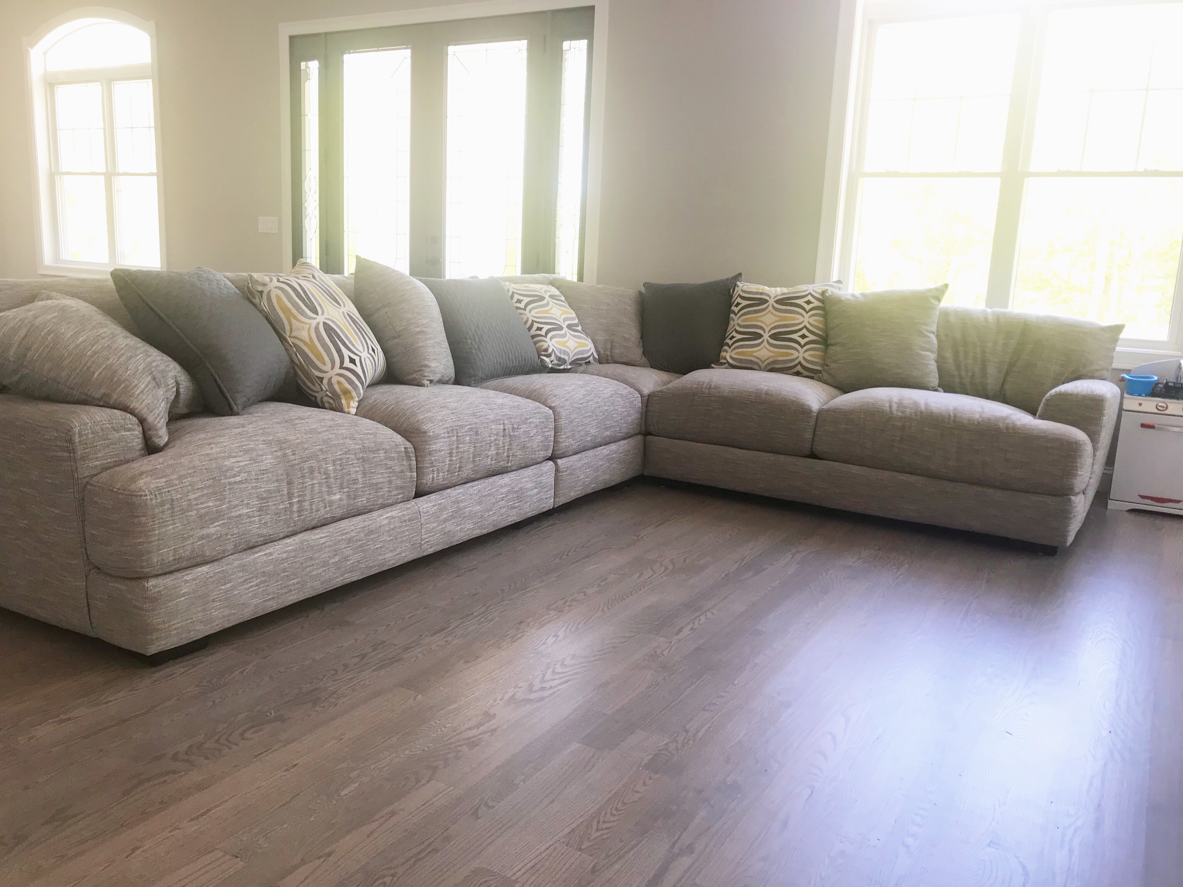 We’re slowly but surely purchasing new furniture for our new home. I’m loving our gorgeous new sectional. It’s super comfy, and I love all of the pillows!