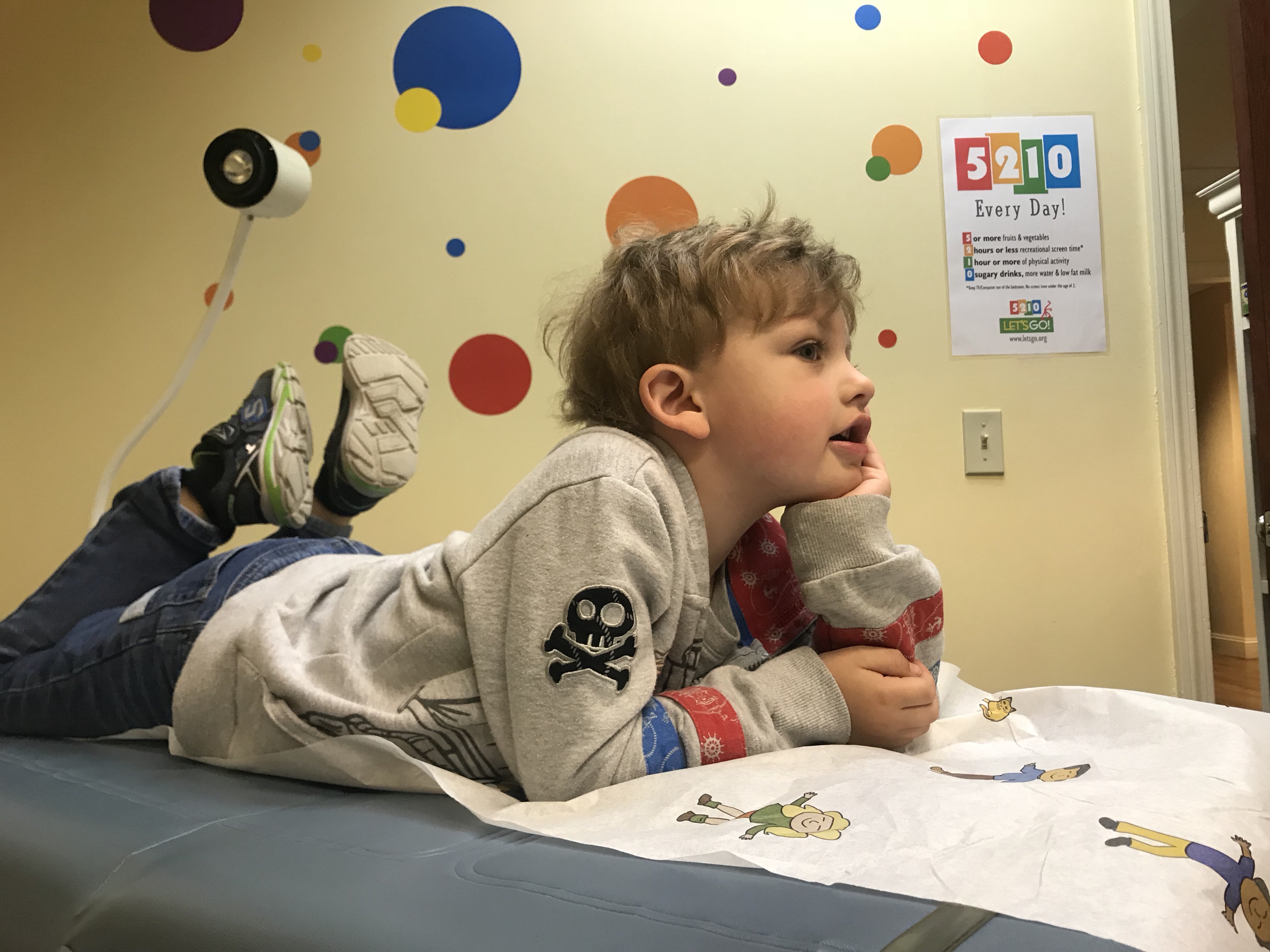 Literally the week we moved in, Avery had a ruptured ear drum. Seriously. Isn’t that how it always works? Anyways, he had his 2 week recheck this week, and he’s back to his silly self! Here he is waiting for the doctor to come check him out. Clearly bored…