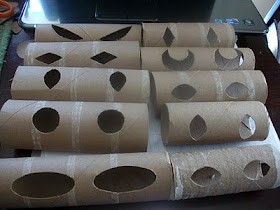 These are toilet paper rolls. You simply cut eye shapes into them, and insert a glow stick. Next you place them inside your bushes. The result? Glowing eyes coming from your bushes! Spooooky!!!
