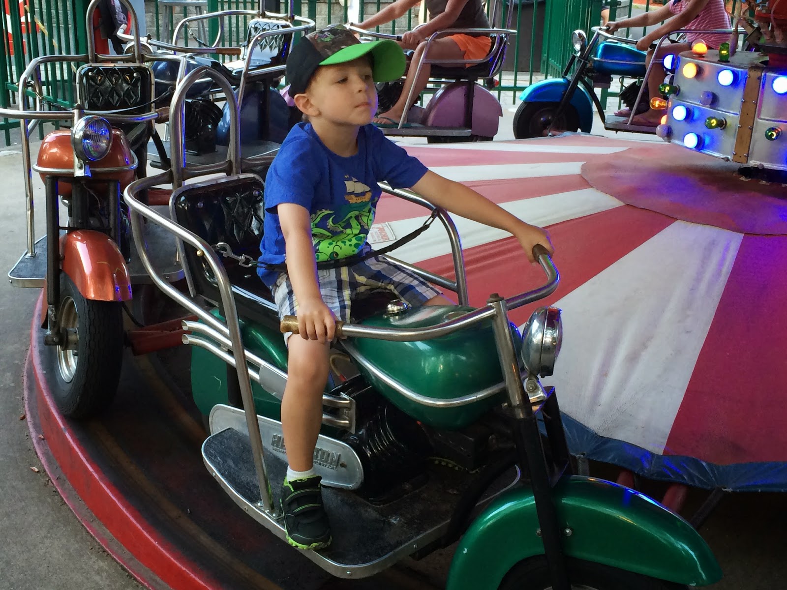 Little Dare Devils are tiny motorcycles that go around. While waiting in line, Lincoln was chatting with another little boy. He told him, “my name is Lincoln James Allen…but, you can call me Lincoln.” Kids say the darndest things, I tell you!