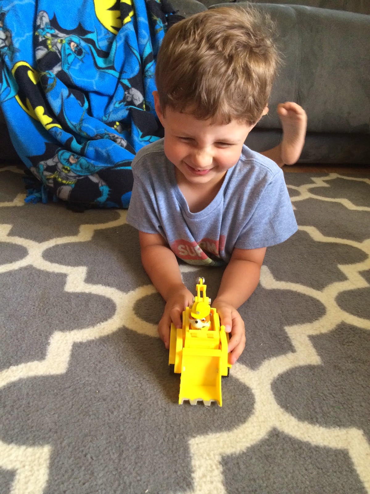 Lincoln also was thrilled to have Rubble’s Digg’n Bulldozer join his collection.  This is a push play bulldozer and action figure toy!  Rubble’s bulldozer features a movable drill and movable scoop.  Lincoln already had a few other figures from this line, so he was really happy to have Rubble join the bunch!