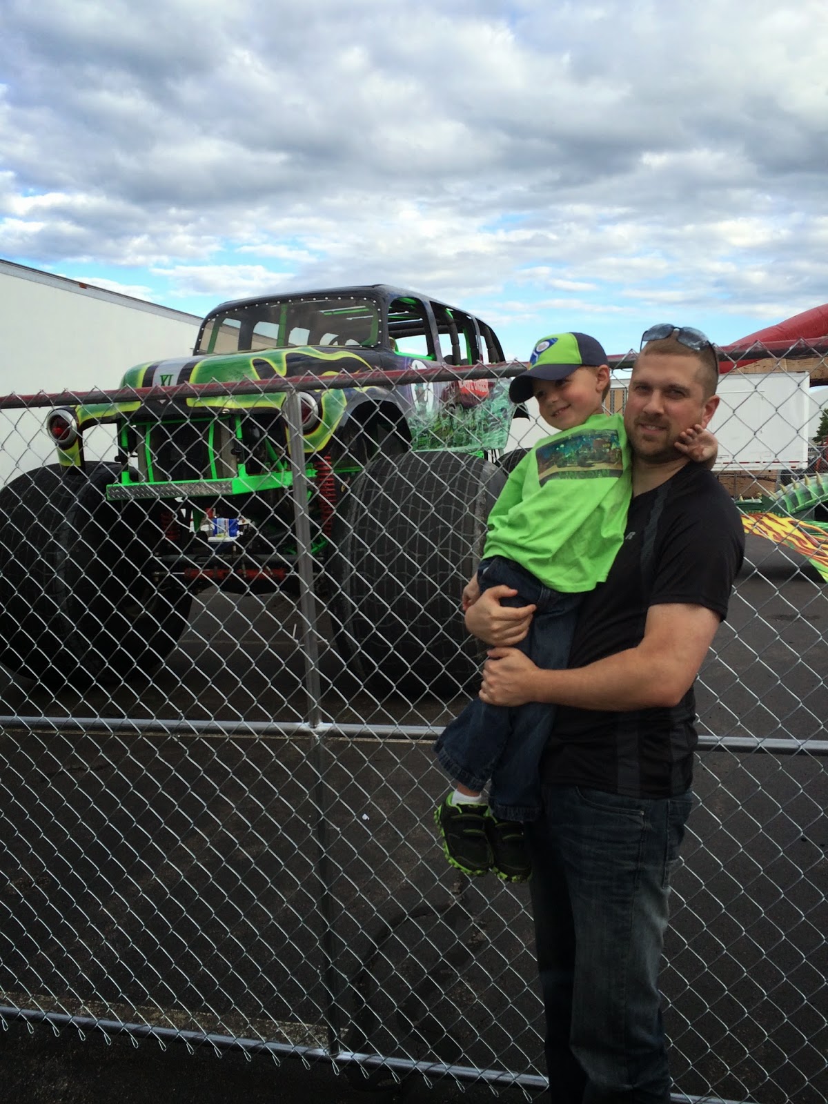 Lincoln with his “Guncle” in front of his beloved Gravedigger