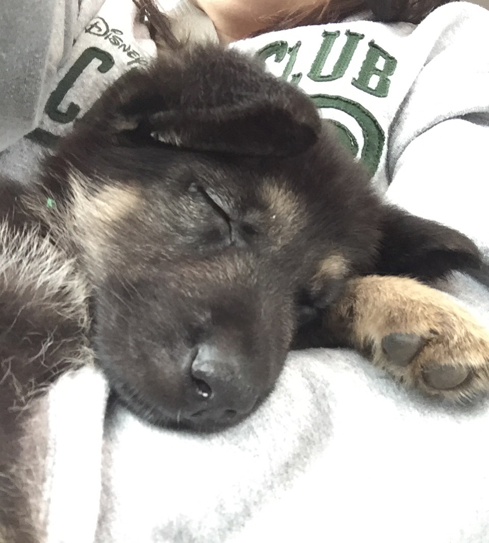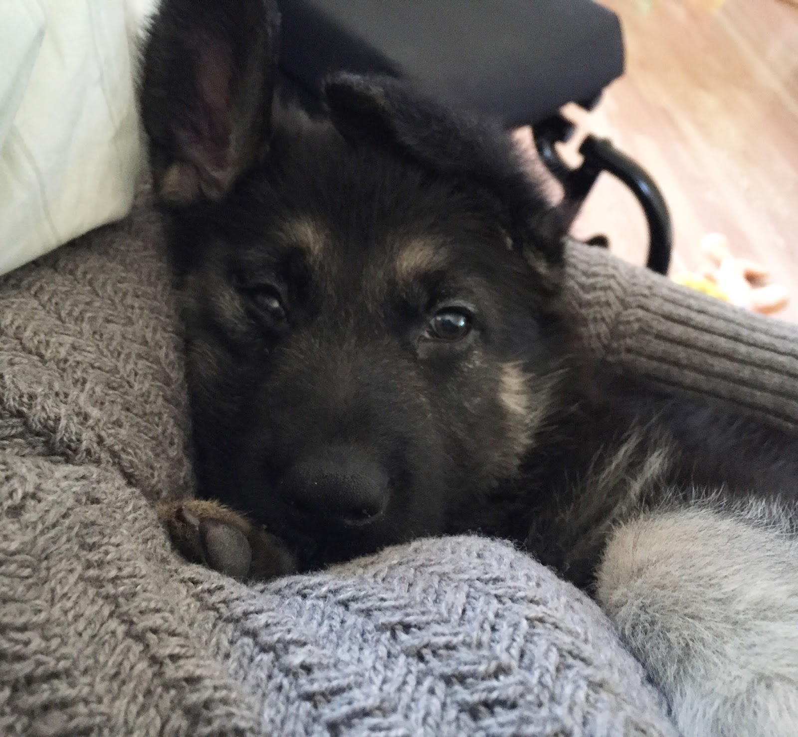 She’s a super sweet pup. We met her parents, and they had the greatest temperaments. I’m enjoying her little puppy cuddles now because she’s growing so quickly!
