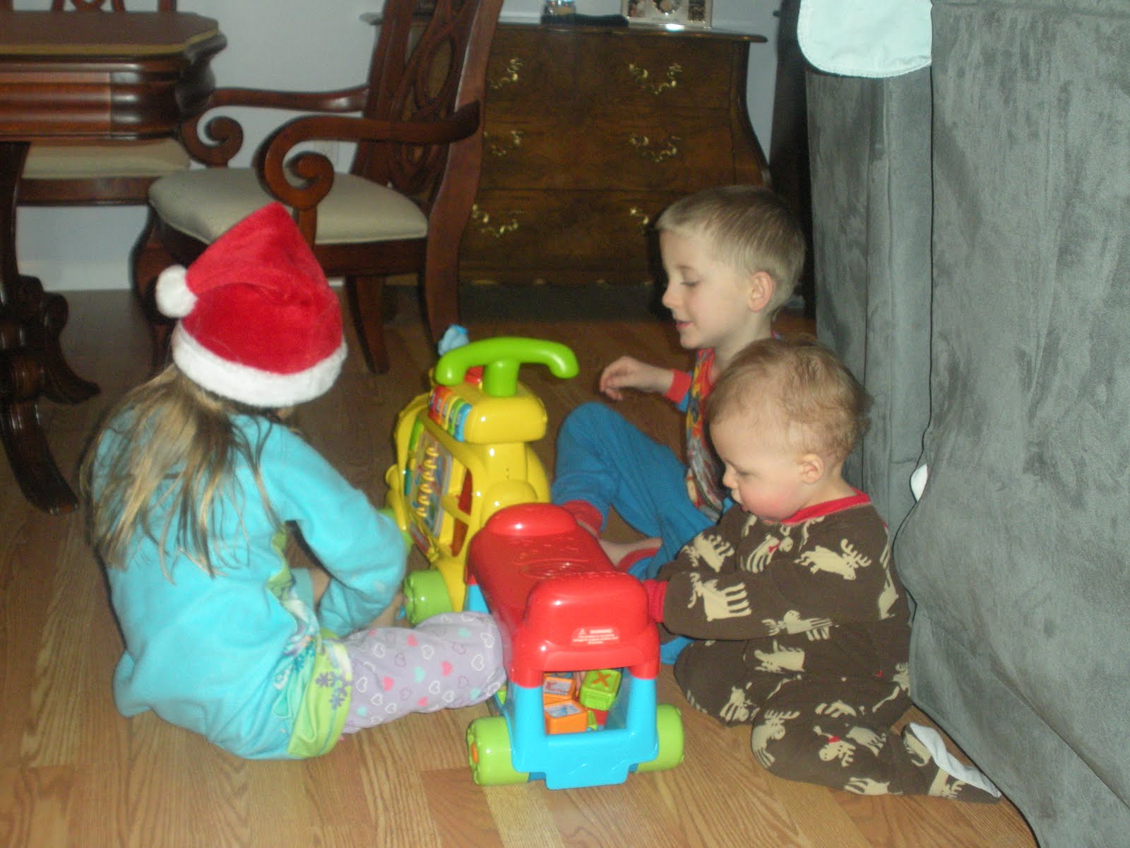 When we came home we put on Lincoln’s Christmas jammies and his cutie Santa hat.  Seriously, how cute is he?!?!