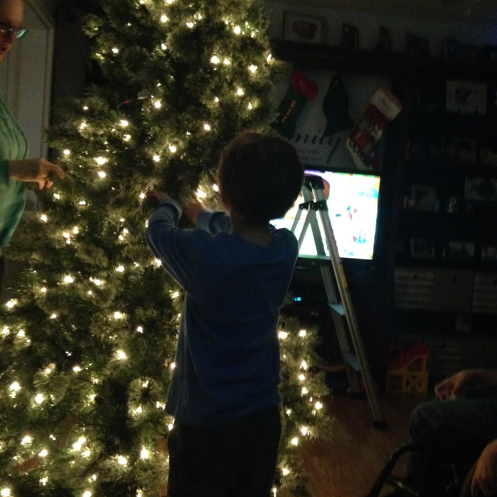 Would you laugh at me if I told you that we live on a Christmas tree farm, but have a fake tree? HA! I thought so.