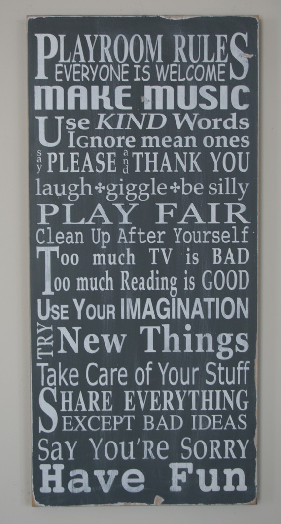 I LOVE all of these ideas, especially the playroom rules sign. How cute! We have a small 1961 ranch and are looking to move soon (2 babies under 2 and we are out of space). First non-negotiable on the list: PLAYROOM!