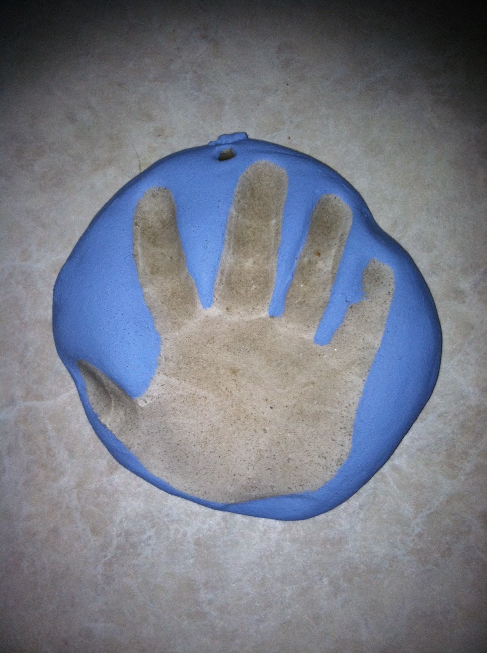 They were not entirely hardened, so I left them to hang out for 5 days. Last night we painted the dough around the handprint. I wanted to leave the actual handprint as is so you could really see the impression of his hand. I’m really happy with the results…