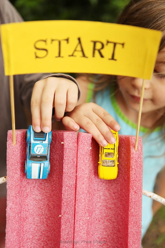 This is super creative, and something any kid would love. Matchbox cars are all the rage in our house. All 24753 of them. And of course they have to race. What a fun way to make a racetrack!