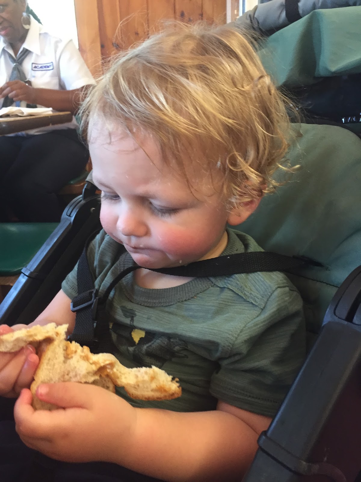 While we ate tasty burgers at the Quassy Restaurant for lunch, my little Avery bug enjoyed himself a peanut butter sandwich. He thought it was finger lickin’ good!