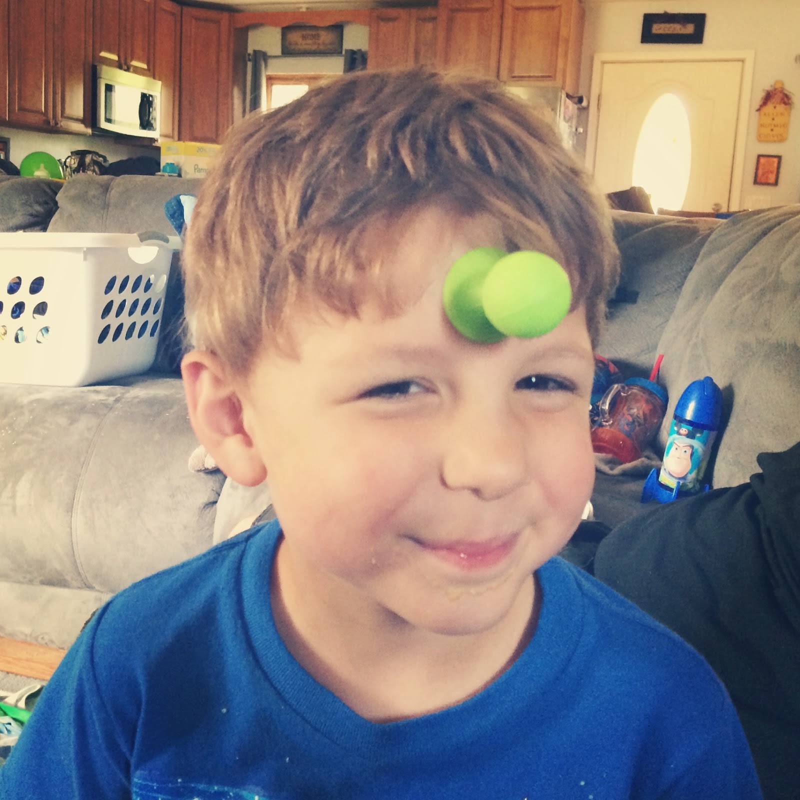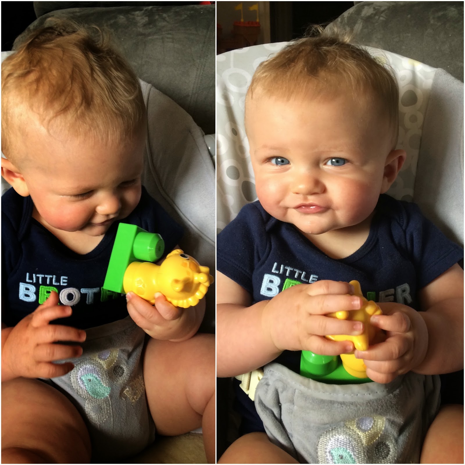 Another fun item in the box was Squigz!  I wish there was more than one, so Lincoln could stick them together…rather than on his head, hah!
