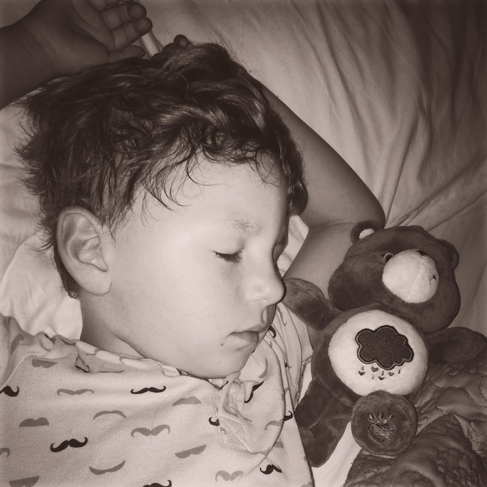 Lincoln is totally my kid.  He was thrilled to see Grumpy Bear, and fell asleep cuddling him that night.  Grumpy has already accompanied us on a sleepover to Grammy and Grandpa’s house, and Lincoln just adores him!