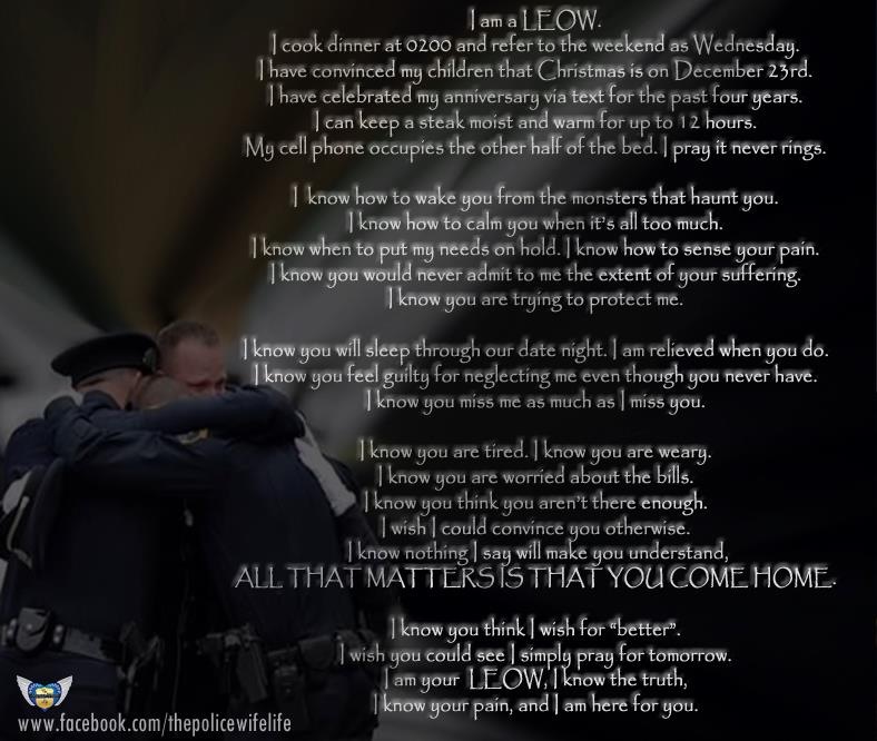 My husband is a police officer. I don’t post about that too often. If you’re a new reader around here, you probably didn’t even know that until now. However, the other day on Facebook, I saw this amazing poem. I thought rather than my typical “Wordless Wednesday” post, I’d share it with you.